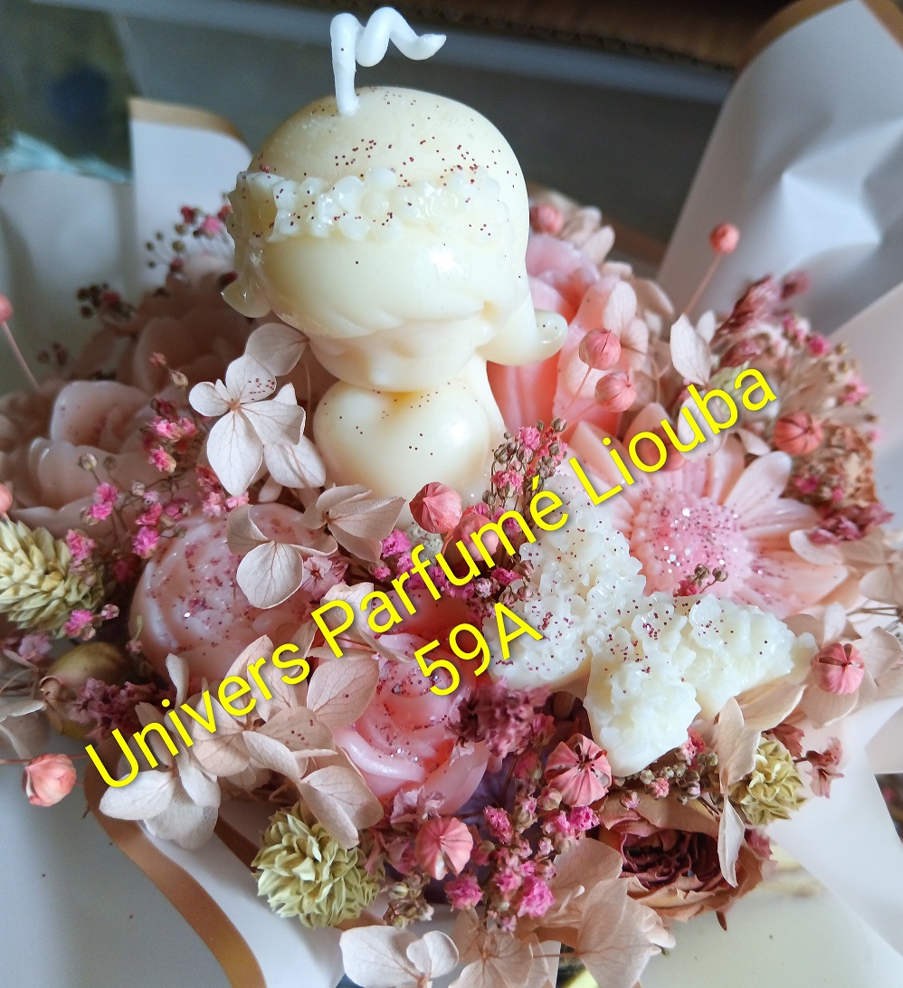 Découvrez nos bouquets composés de fleurs moulées avec de la cire végétale, joliment colorés et délicatement parfumés. Les bouquets sont composés de bougies et/ou fondants selon les modèles. Le délais de fabrication est de 7 à 10 jours environ. (Possibilité d'une livraison express en cas de besoin sous 72 h sur un modèle disponible en boutique)